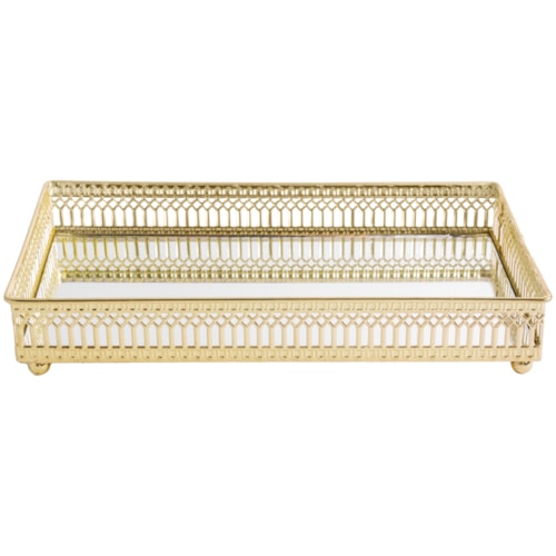 Bandeja de Metal Curvas com Espelho Dourado Grande - 41cm