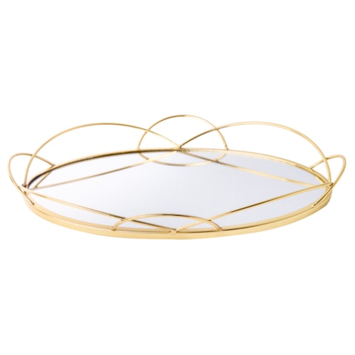 Bandeja de Metal Curvas com Espelho Dourado Médio - 34cm