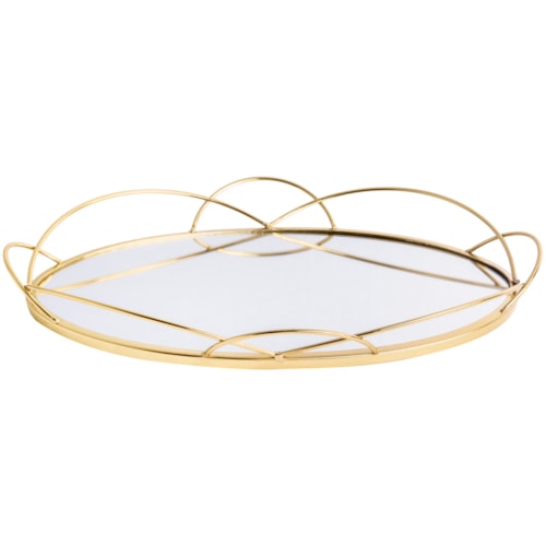 Bandeja de Metal Curvas com Espelho Dourado Médio - 34cm