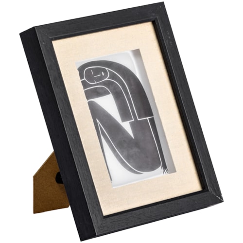 Porta Retrato de Mdf e Linho Moldura Bege e Preta - 32,5cm